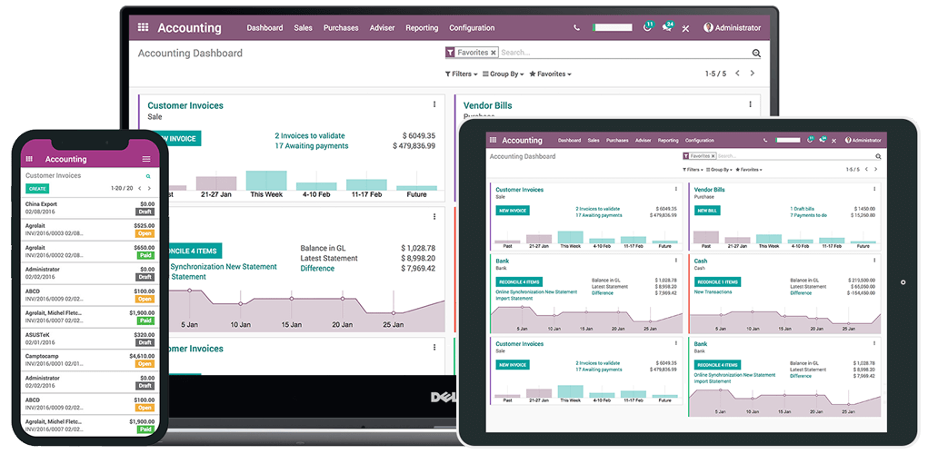 Multi-company and multi-currency support built-in.